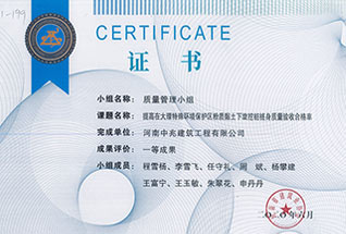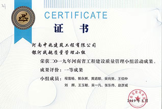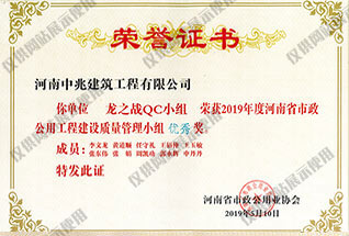 2019年度河南省市政公用工程建設質(zhì)量管理小組優(yōu)秀獎
