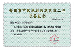 2017年度鄭州市市政基礎設施優(yōu)良工程
