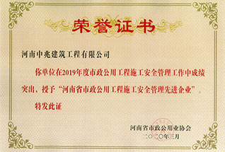 市政公用工程施工安全管理先進企業(yè)