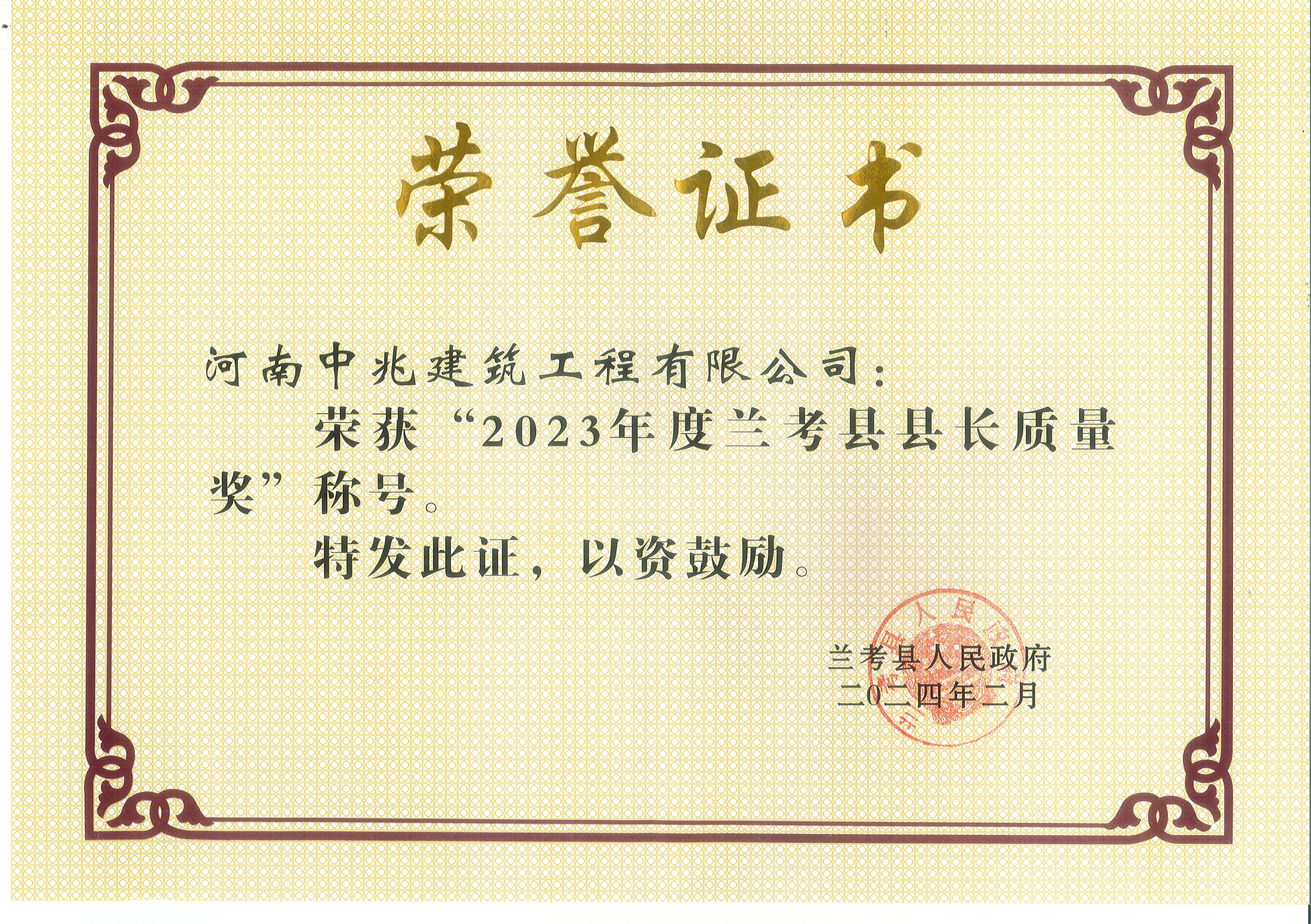 2023年度蘭考縣縣長質(zhì)量獎